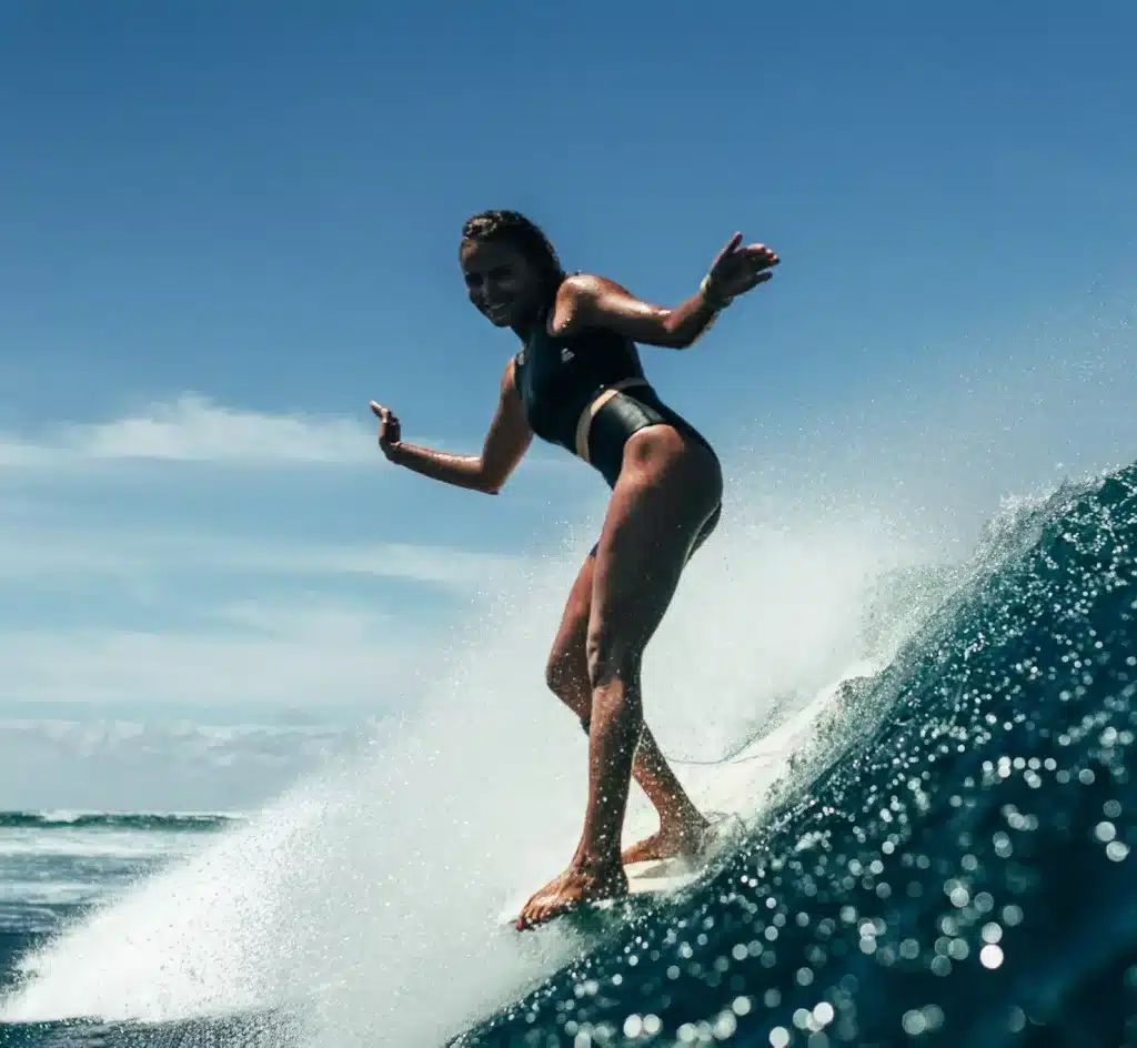 Originaire de l’île de La Réunion, Alice Lemoigne est une longboardeuse plusieurs fois championne de France et d’Europe.